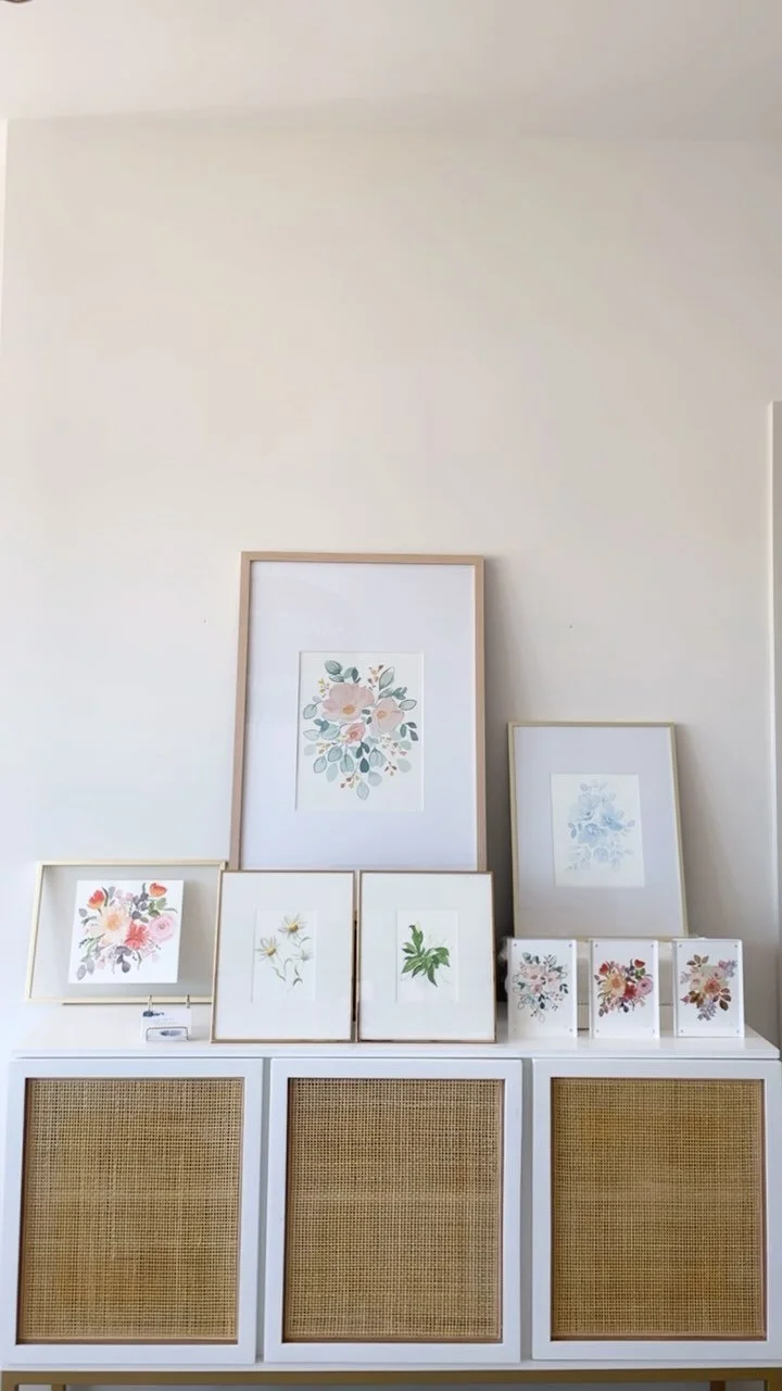 Watercolor and mixed-media pieces inspired by natural palettes, florals, and layered interiors.