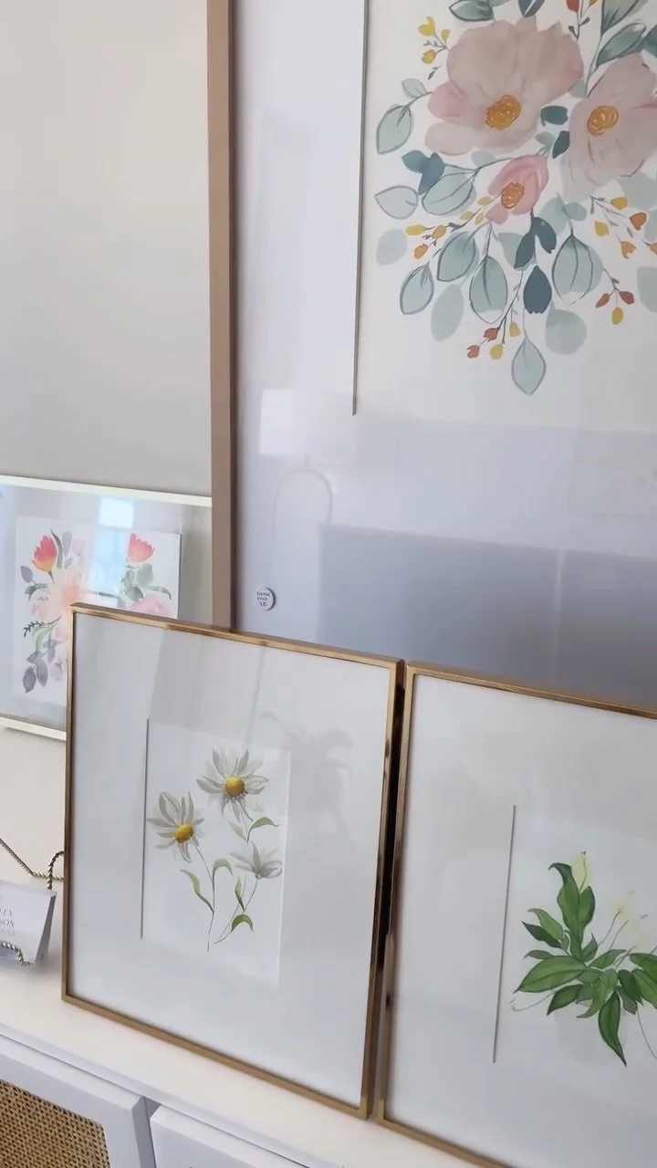Watercolor and mixed-media pieces inspired by natural palettes, florals, and layered interiors.